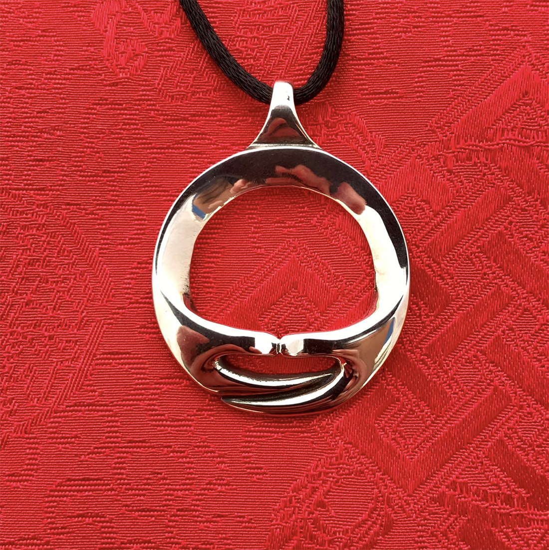 Dimensions: 1 ½” long, sterling silver strung on black cord