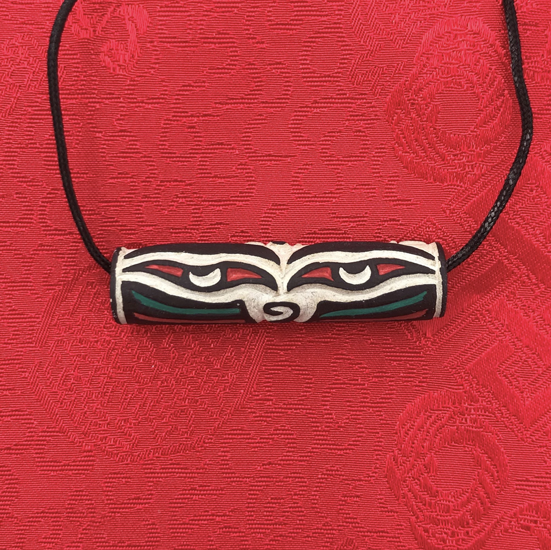 Dimension: 1 ¾” wide, painted bead strung on black cord