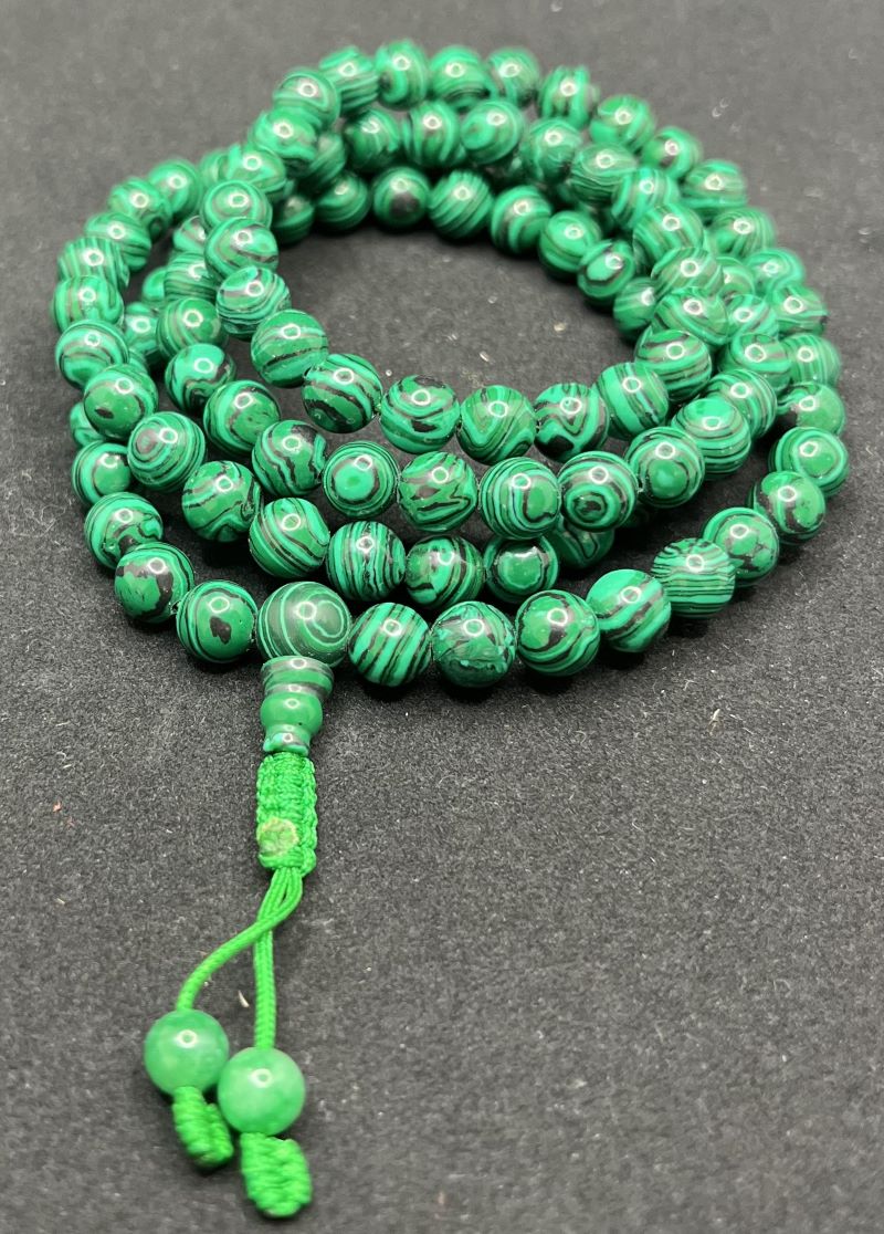 Malachite Mala 108 beads on wire, hand strung in Thailand.