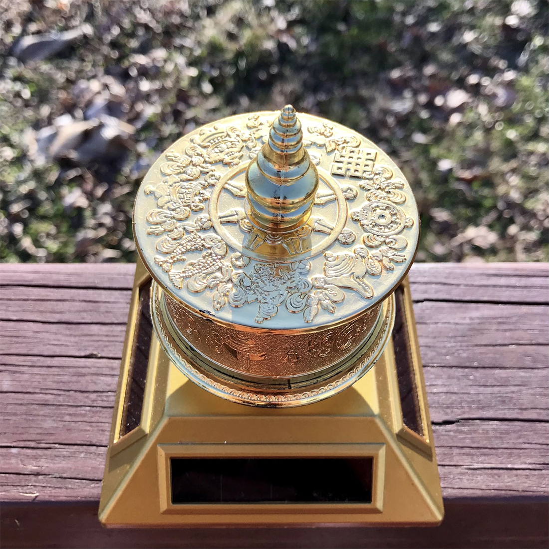 The Solar Prayer Wheel is filled with traditional Bön prayers.