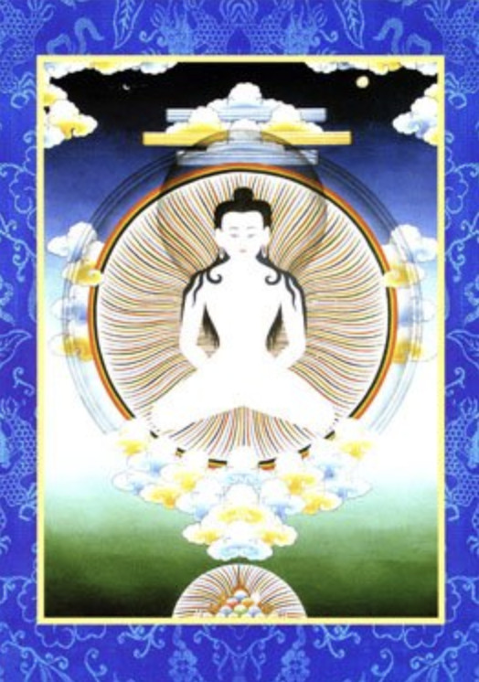 Tapihritsa, born in the seventh to eighth century to a nomadic family in Zhang Zhung (now northwestern Tibet), is considered both a historical figure and an enlightened being who represents the true nature of reality.Tapihritsa was the 25th master in an orally transmitted lineage, known as the Zhang Zhung Nyen Gyü, who transmitted dzogchen pith instructions on the nature of the mind. All these masters attained the rainbow body, or body of light, meaning that the physical body disappeared upon their passing, leaving no trace other than hair and fingernails. After achieving the rainbow body, Tapihritsa later appeared as a young boy to offer guidance and teachings to Nangzher Löpo. He allowed his student to write down the core teachings for the benefit of future generations. Tapihritsa is often held as the central image of refuge in Lamai Naljor, or Guru Yoga.